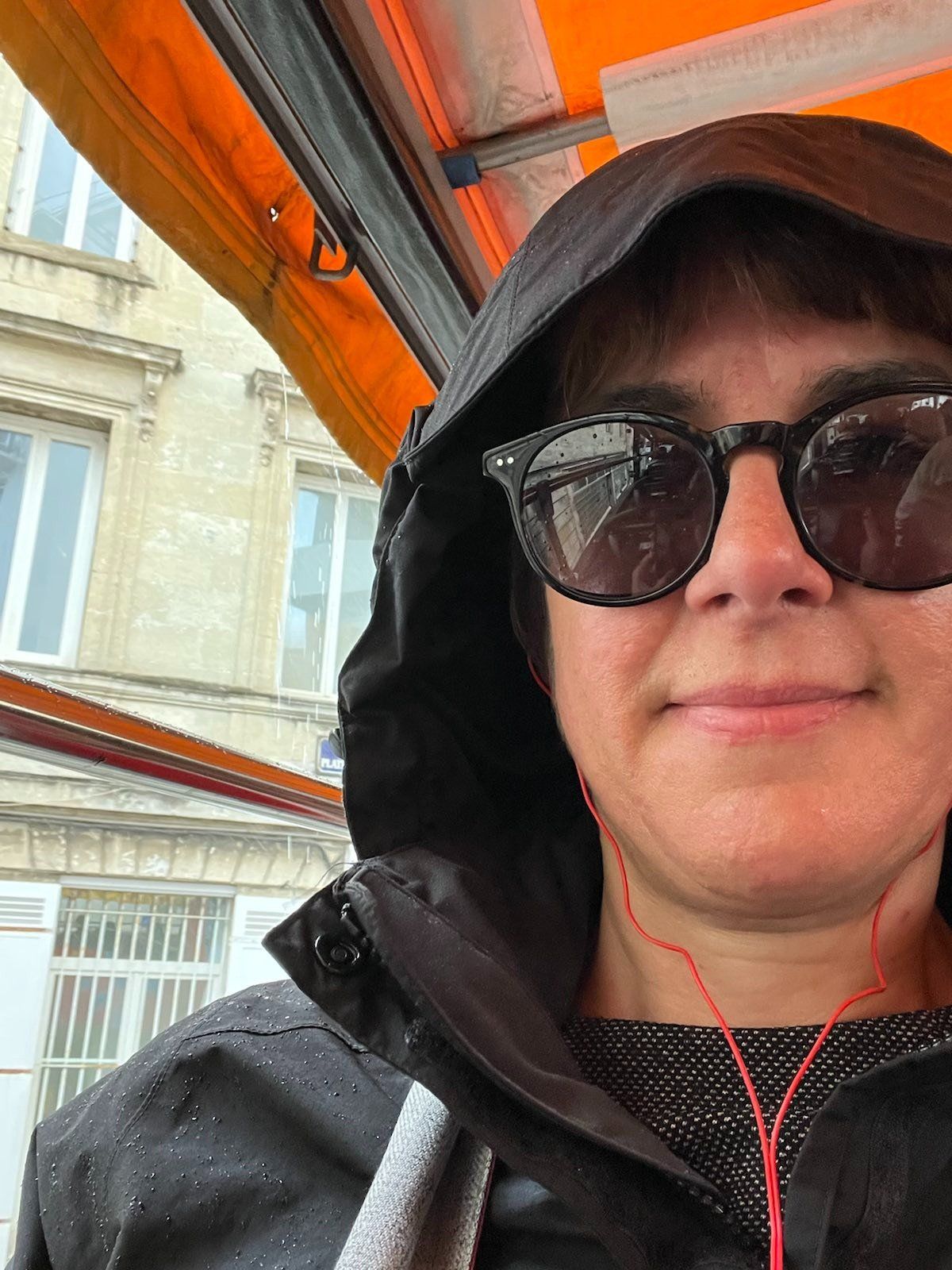 Der nächste Tag ist Bordeaux gewidmet. Die Stadt ist toll, keine Frage. Und auch hier kann man bestimmt mehr als nur 1 Tag verbringen. Nur bitte nicht mit dem Auto. Und bitte nicht mit öffentlichen Verkehrsmitteln...bis ich da zu einem Ticket gekommen bin. Bin ja gut zu Fuß, insofern nicht so schlimm. Heute auch unbeständiges Wetter, ich habe mich spontan für eine Fahrt im City-Touri-Bus entschieden. Das ist noch genauso, wie vor Jahren und Jahrzehnten. Man bekommt einen Kabelkopfhörer, stöpselt ihn am Vordersitz ein und wählt dort die passende Sprache aus. Der gesprochene Beitrag passt im Großen und Ganzen schon zu dem, was man auch gerade sieht. Und wirklich nur manchmal gibt es eine spontane Unterbrechung und oft passt die Stelle an der das Band dann weiterläuft sogar ein bißchen besser zu dem aktuellen Sichtfeld. Die permanente Untermalung mit leisem Hintergrundknacken nimmt man da eigentlich kaum noch wahr und ich finde erst sie macht es zum vollständigen Erlebnis.