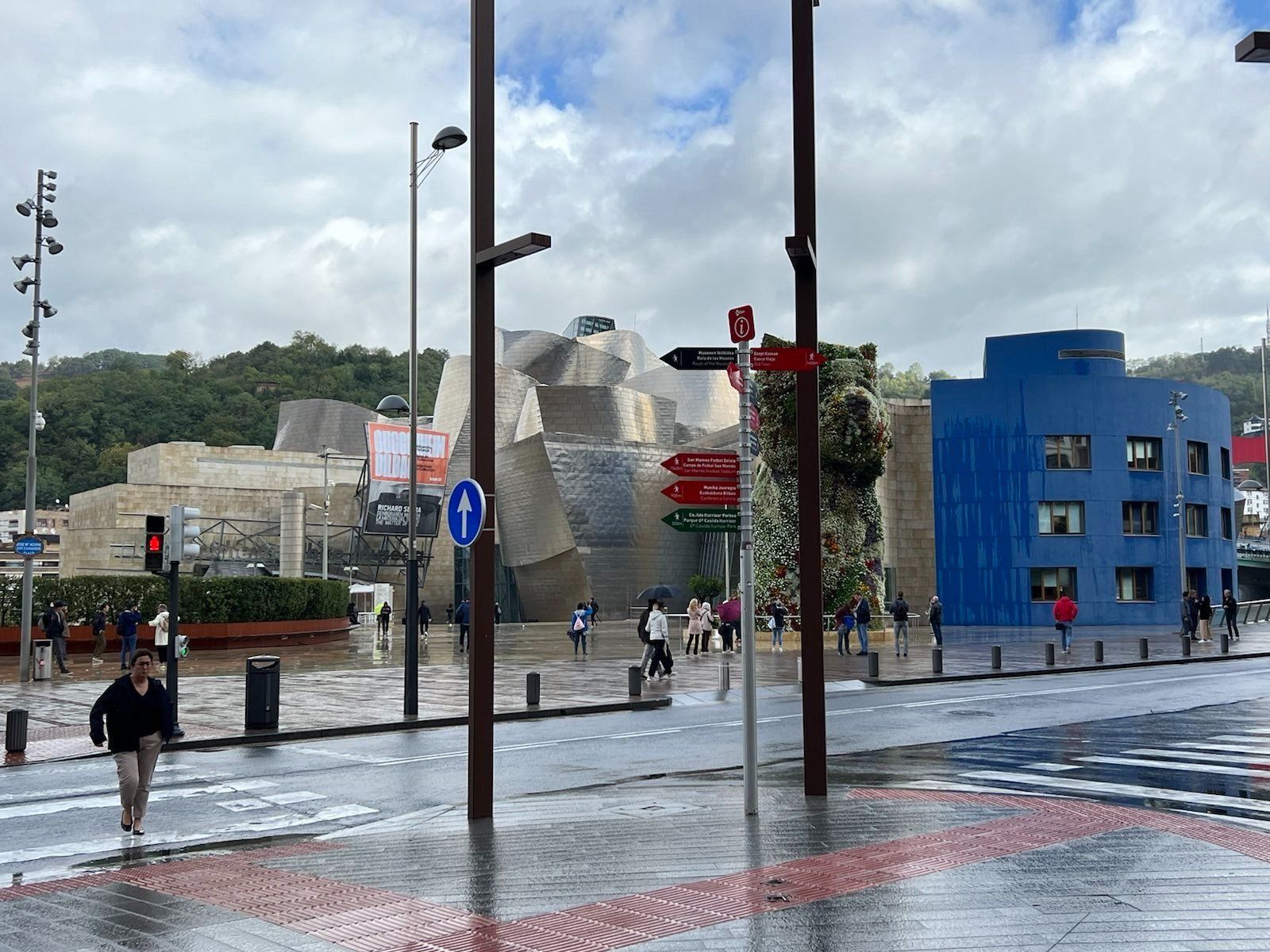 Mangels Unterkunft in San Sebastian fahre ich weiter nach Bilbao, wo ich auch keine passende Campingmöglichkeit finde, dafür aber ein Zimmer in einer Pension. Sie ist ein Stück vom überwachten Parkplatz entfernt und so bekomme ich schnell ein Gefühl dafür, wie hügelig diese Stadt doch ist. Pension früh erreicht, genügend Zeit den folgenden Tag zu planen und das Ticket fürs Guggenheim Museum zu buchen.